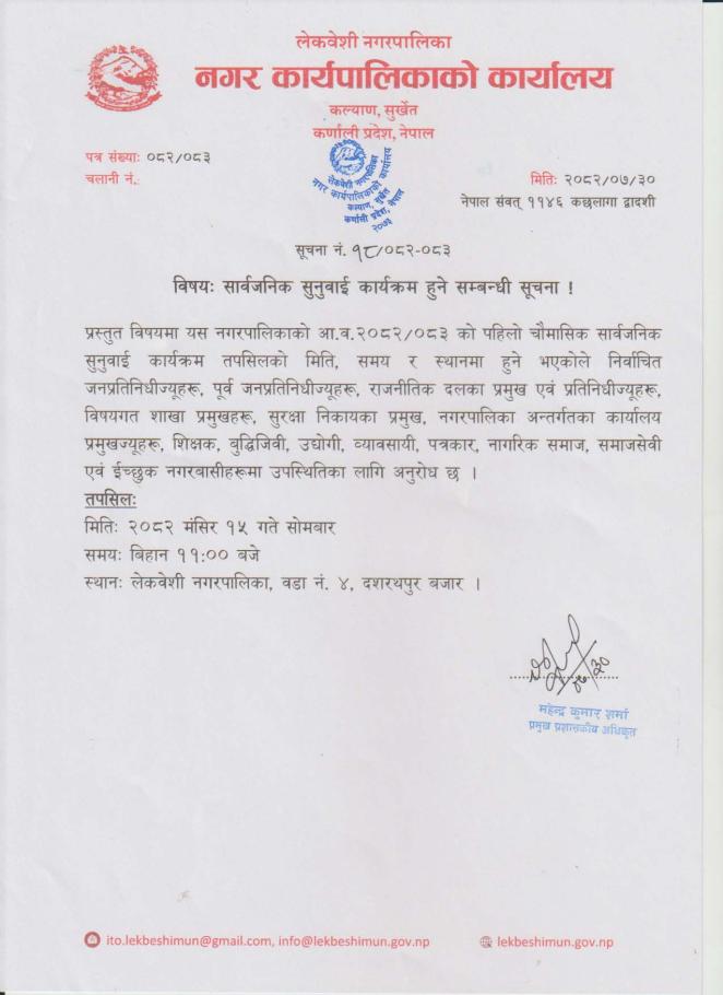 » सार्वजनिक सुनुवाई कार्यक्रम हुने सम्बन्धी सूचना