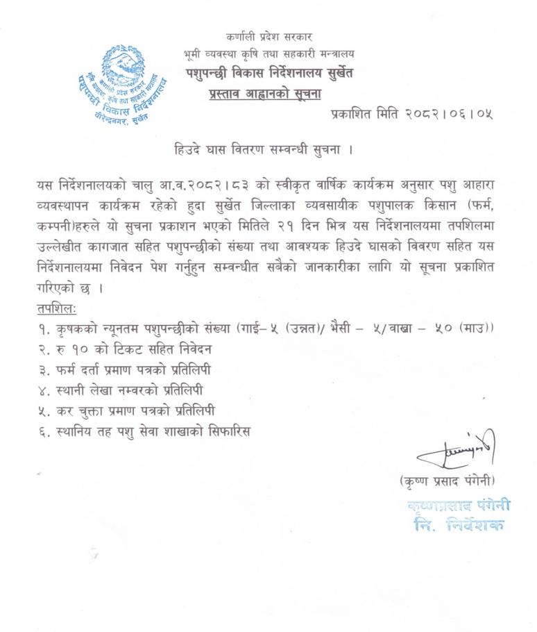 हिउँदे घाँसको वीउ माग गर्ने सम्बन्धि सूचना