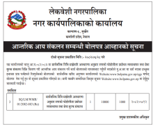 आन्तरिक आय सम्बन्धि बोलपत्र आह्वानको सूचना