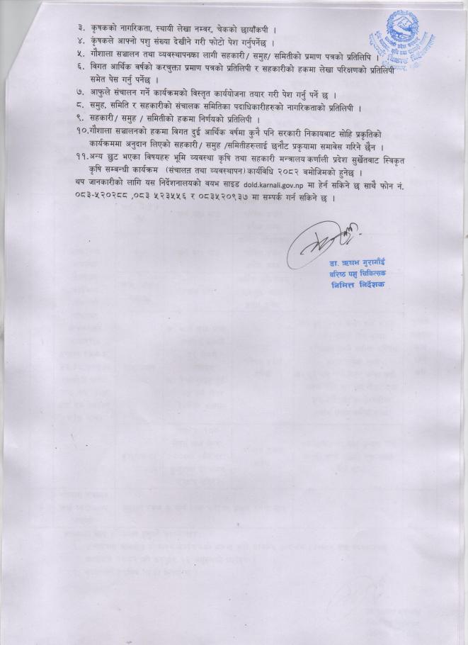 दूध उत्पादन तथा पशुपन्छी विकास प्रोत्साहन कार्यक्रम सम्बन्धी सूचना