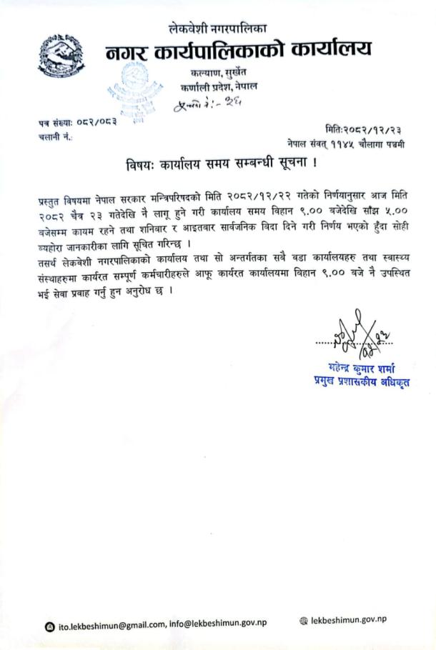 सेवा प्रभावित हुने सम्बन्धी सूचना