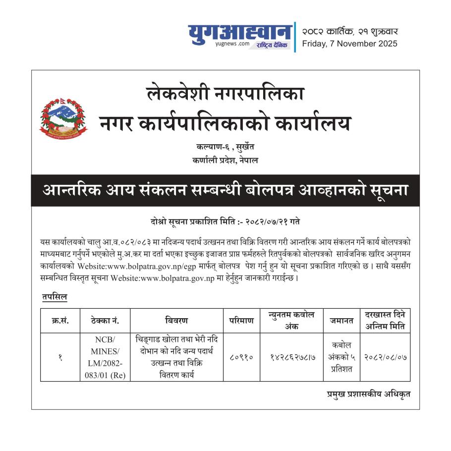 » आन्तरिक आय संकलन सम्बन्धी बोलपत्र आह्वानको सूचना