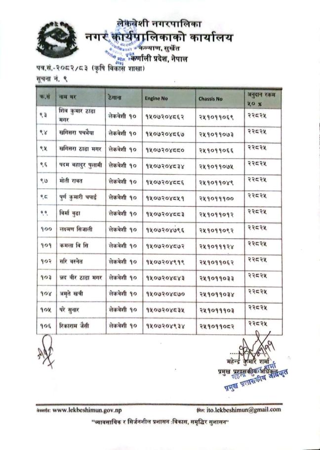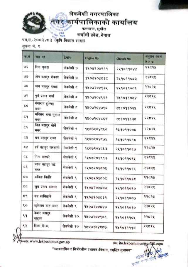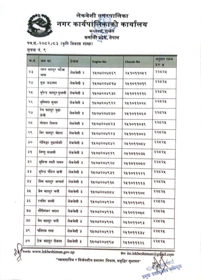 » कृषि यान्न्रीकरण कार्यक्रम अन्तर्गत ५०% अनुदानमा मिनिटिलर प्राप्त गर्ने लाभग्राहीहरुको विवरण सार्वजनिक गरिएको सूचना