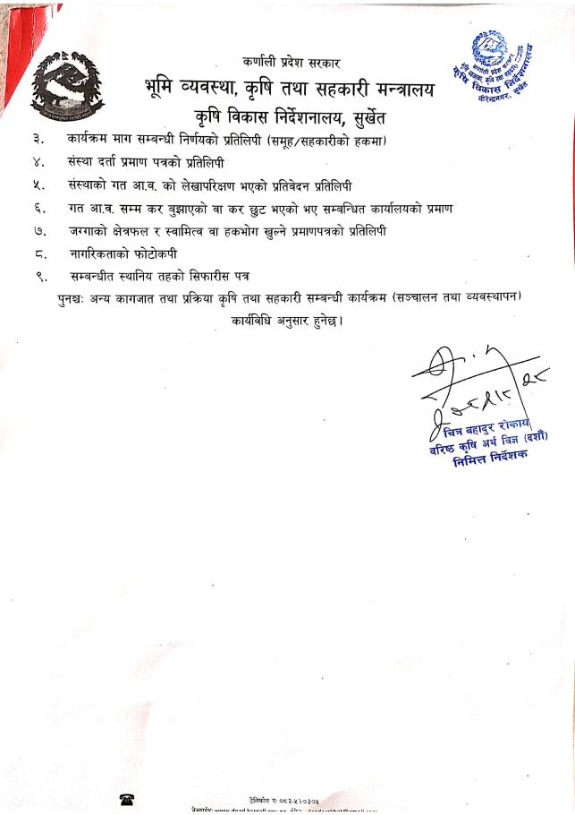 » कृषि विकास निर्देशनालय सुर्खेतको आ.व.२०८२/०८३ को वार्षिक स्वीकृत कार्यक्रममा प्रस्ताव पेश गर्ने सम्बन्धी सूचना
