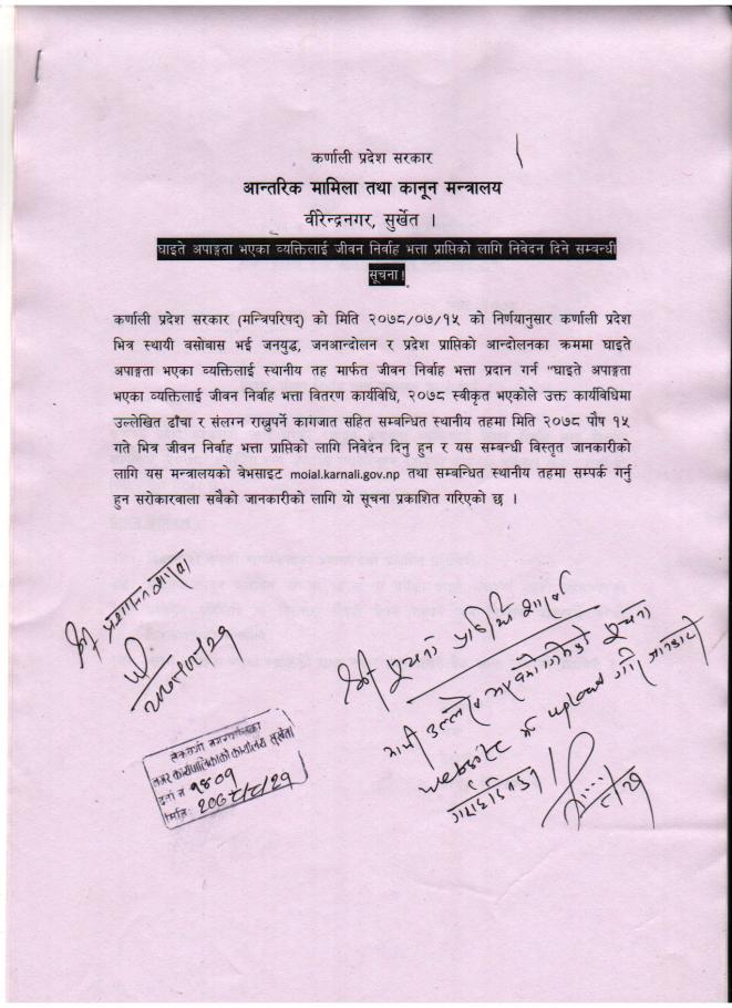 घाईते, अपाङ्गता भएका ब्यक्तीहरु लाई जीवन निर्वाह भत्ताका लागी आवेदन दिने बारे