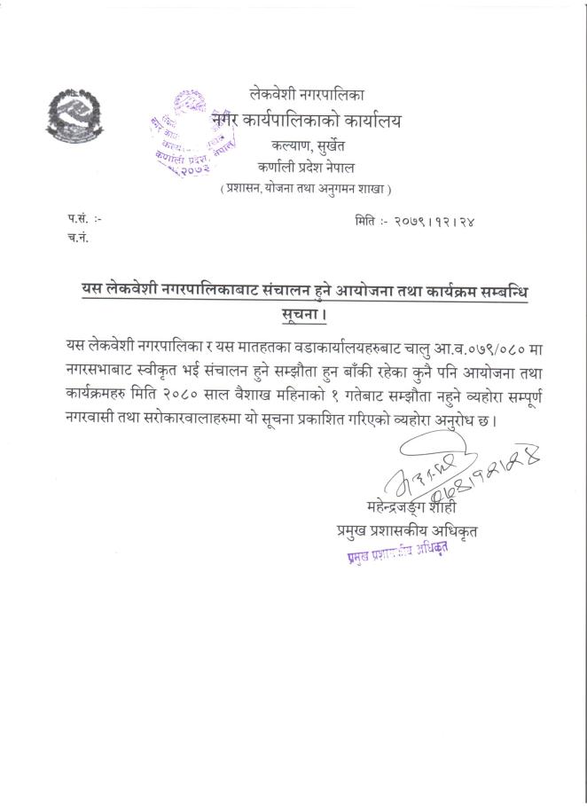 नगरपालिकाबाट संचालन हुने आयोजना तथा कार्यक्रम तथा आयोजना सम्बन्धमा ।
