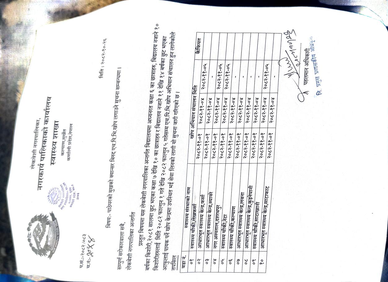 पाठेघरको मुखको क्यान्सर बिरुध्द एच.पि.भि.खाेप लगाउने सुचना