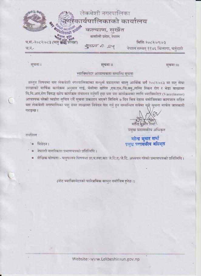 भ्याक्सिनेटर आवश्यकता सम्बन्धी सूचना