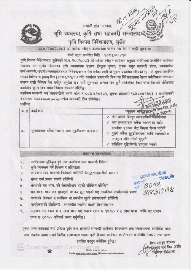 » सुन्तलाजात बगैंचा स्थापना तथा सुदृढिकरण कार्यक्रम सम्बन्धी सूचना