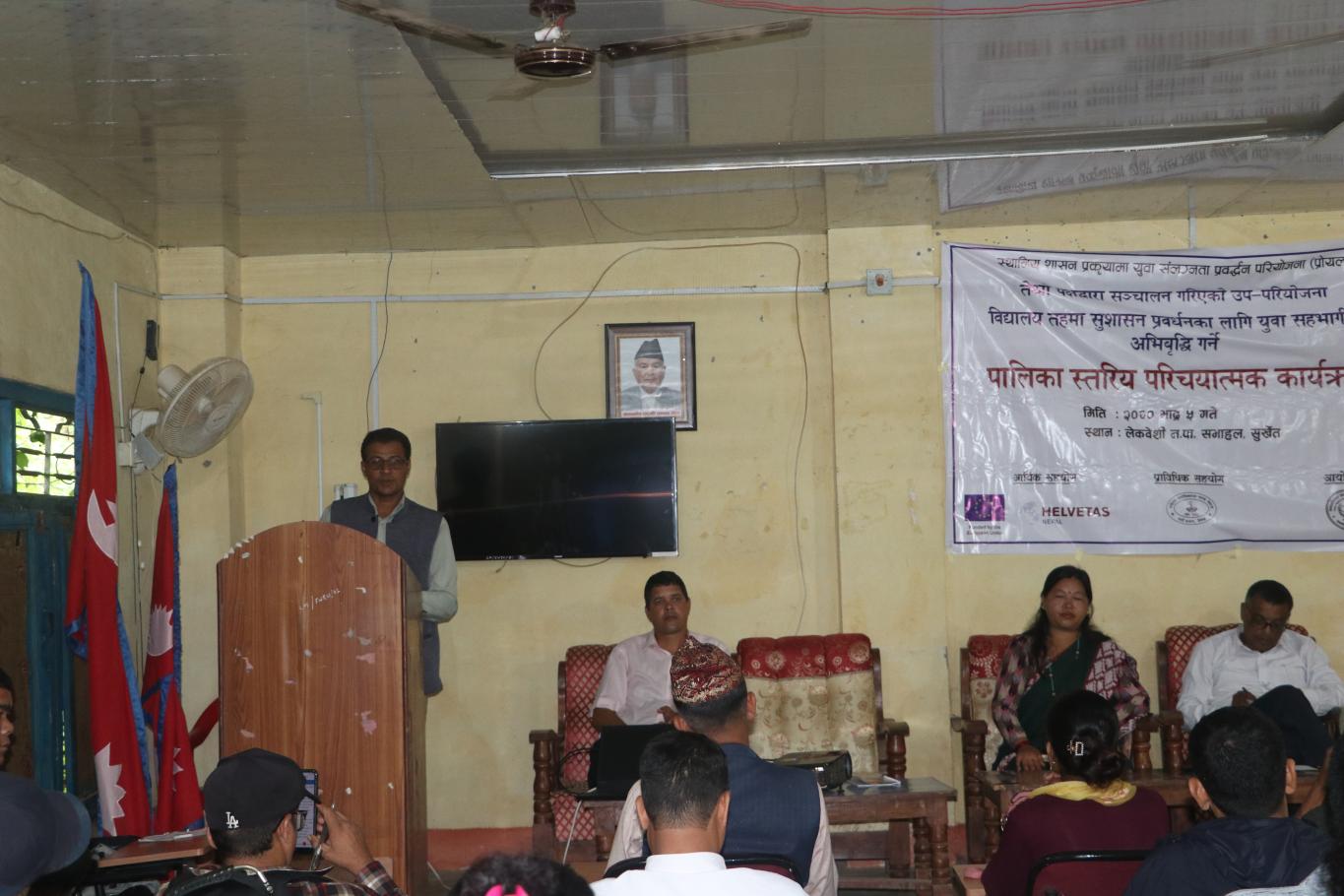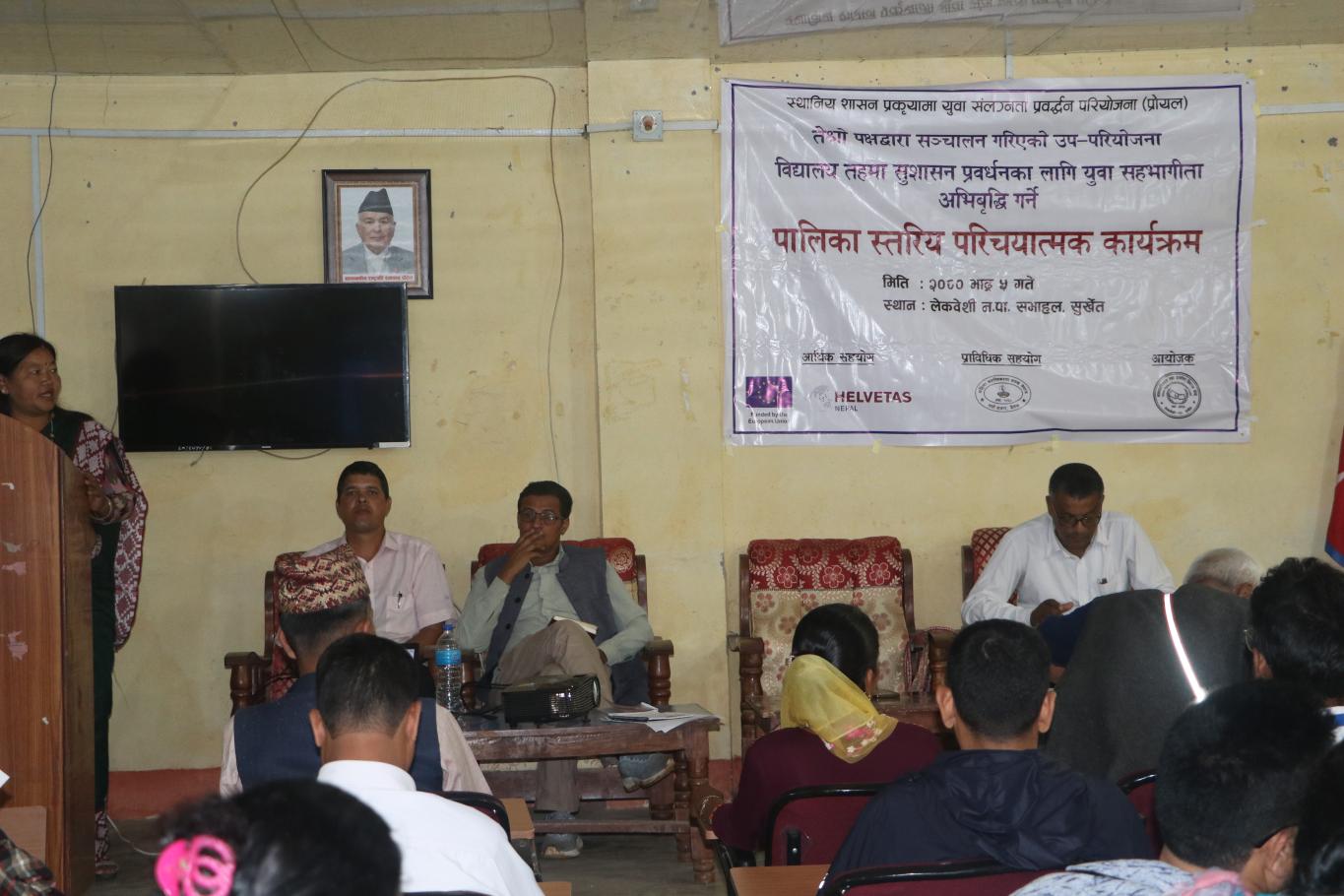 स्थानीय शासनमा युवा संलग्नता प्रवर्धन परियोजना (प्रोयल) को आयोजनामा लेकवेशी नगरपालिकामा विद्यालय तहमा सु-शासन प्रवर्धनका लागि युवा सहभागिता वृध्दि गर्न पालिकास्तरिय परिचयात्मक