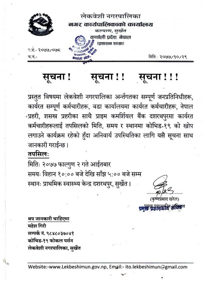 कोभिड-१९ को खोप लगाउन आउने सम्बन्धी अत्यन्त जरूरी सूचना