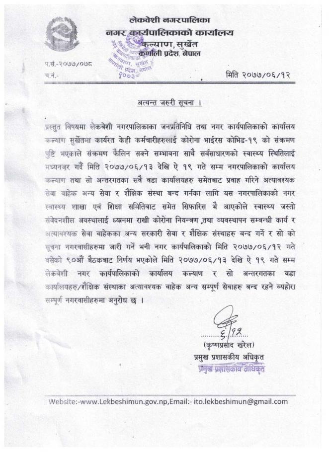 » सेवा स्थगन सम्बन्धि अत्यन्त जरुरी सूचना ।