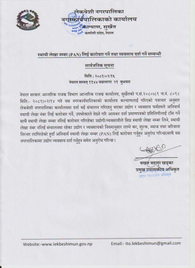 » स्थायी लेखा नम्बर (PAN) लिई कारोवार गर्ने तथा व्यवसाय दर्ता गर्ने सम्बन्धी सार्वजनिक सूचना