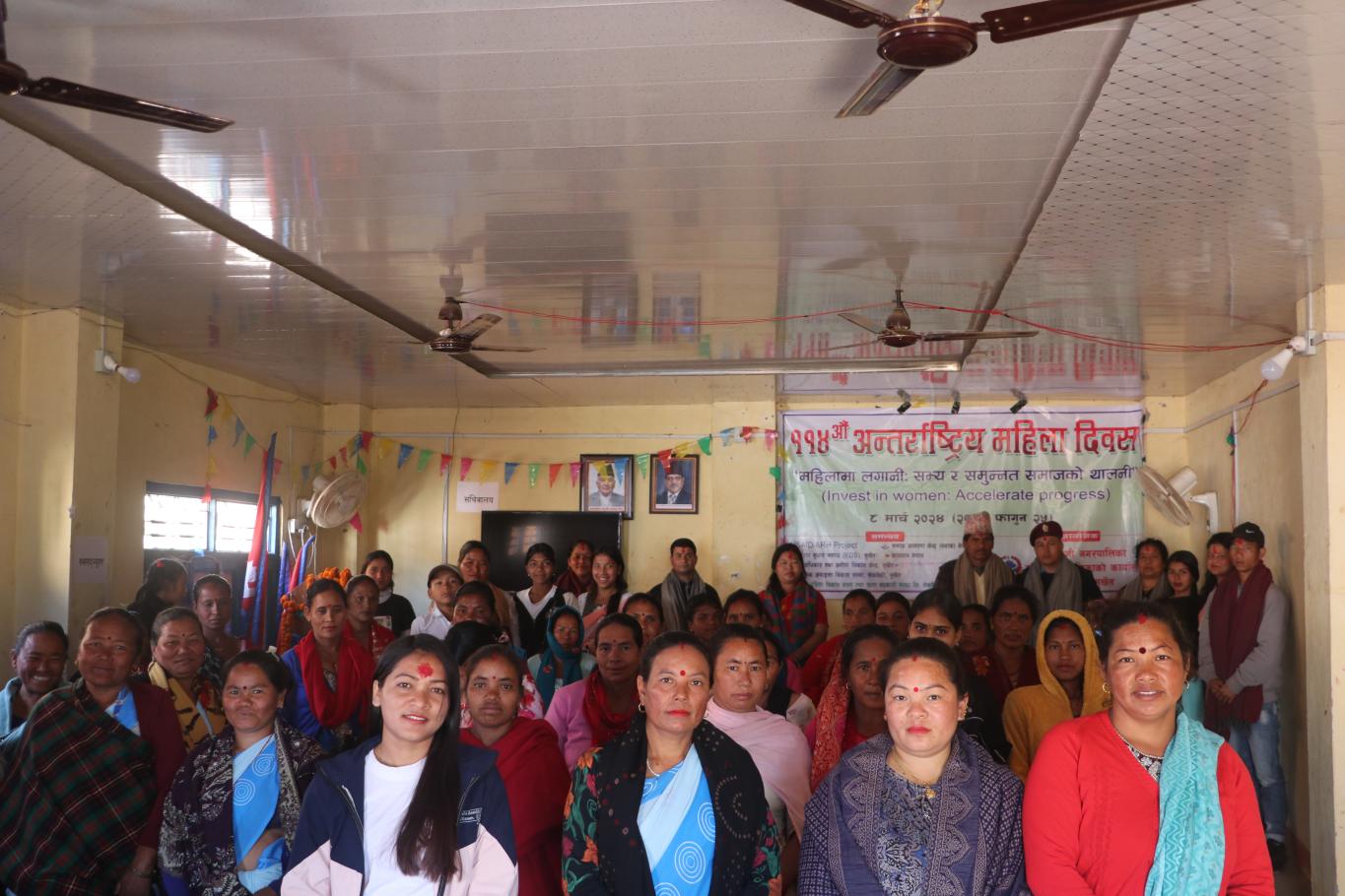 मनाईएको छ ।  नगर उप-प्रमुख श्री विमला खड्लुक ज्यूको आतिथ्यता, नगर प्रमुख श्री उमेश कुमार पौडेल ज्यूको आतिथ्यतामा  सम्पन्न भएको छ ।  कर्मचारी,सुरक्षा नियकाय,महिला स्वयंसेविका, स्थानीयहरु समेतको उपस्थिति रहेको कार्यक्रममा  उपस्थितहरु मध्येबाट नारीहरुको